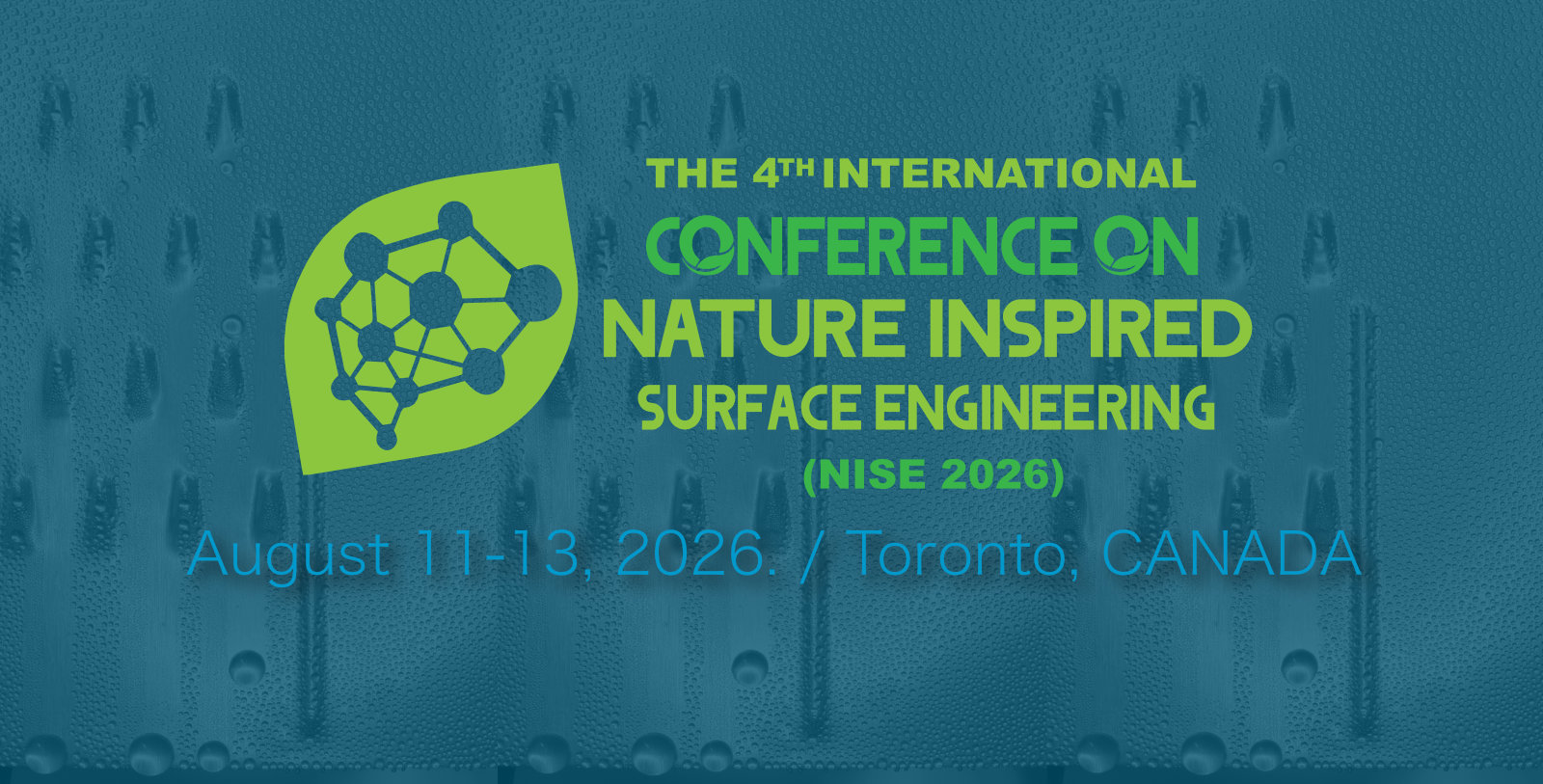 The fourth International Conference on Nature-Inspired Surface Engineering (NISE 2026), a multidisciplinary conference, will be held on August 11-13, 2026. The conference will be held at the University of Toronto, Canada.